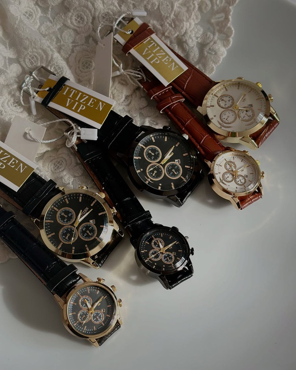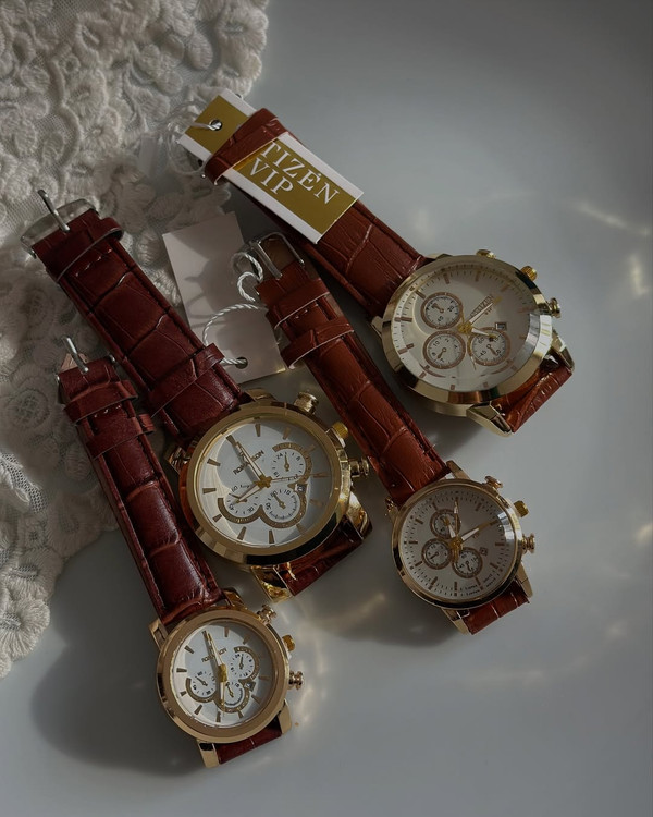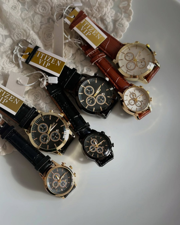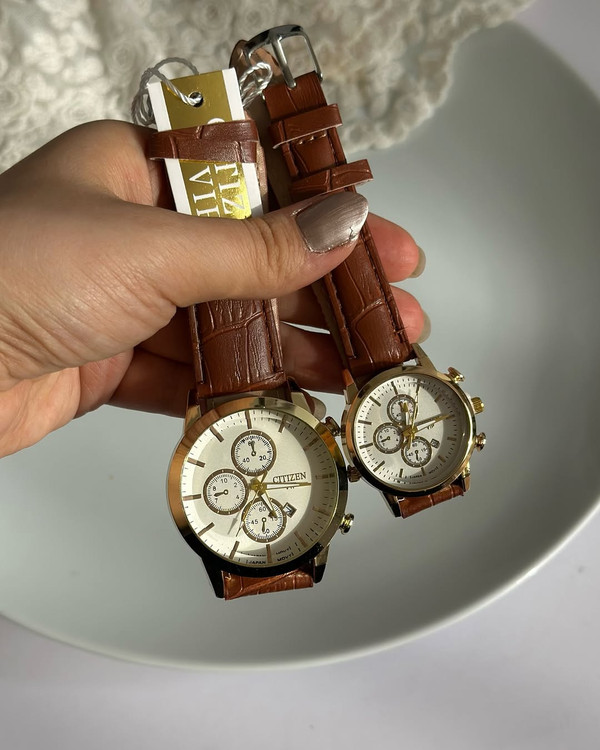 ست ساعت زنانه مردانه بند چرم سیتیزن