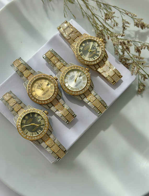 ساعت فول نگین اصل رولکس اورجینال با قفل پروانه ای مخفی با ابکاری قوی وبدون ریزش نگین