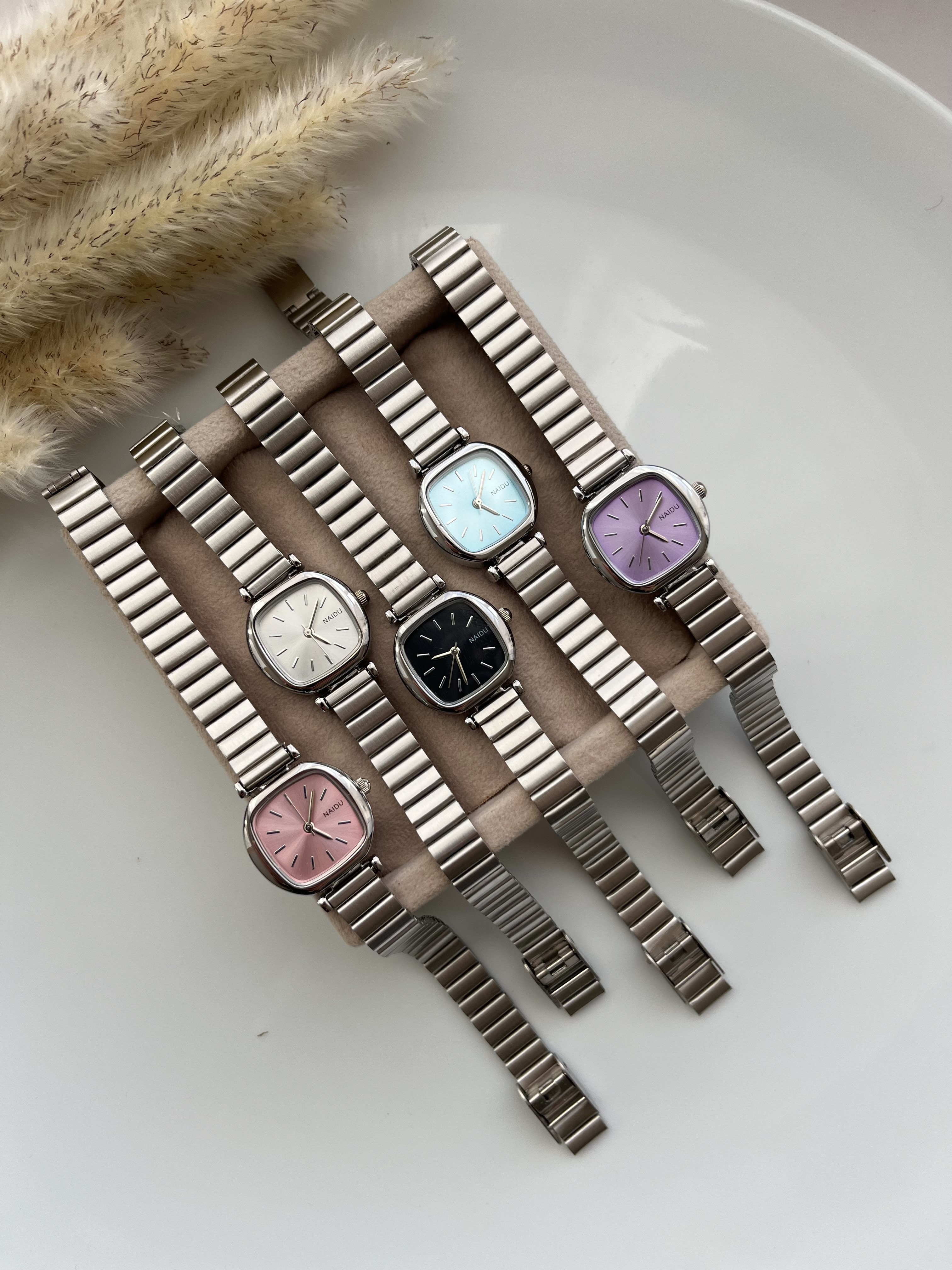 ساعت با بند و بک تمام استیل و صفحه با رنگبندی متنوع دسته استیل و ضد حساسیت فریم دور ساعت ترجیحا مراقبتی موتور و باطری درجه یک اما قابل تعویض