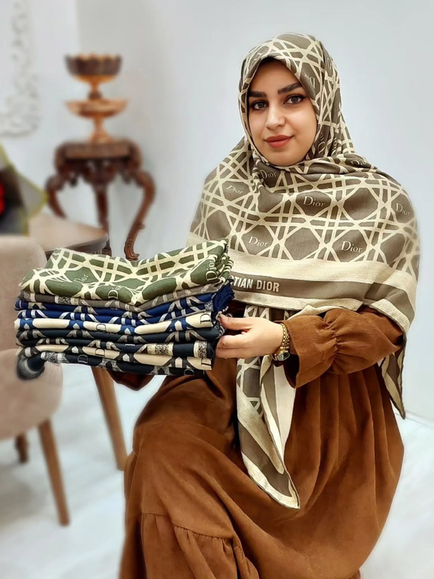 روسری نخی پاییزه سایز ۱۴۰ طرح دیور خطی