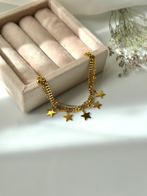 دستبنداستیل رنگ ثابت با طرح ستاره آویز