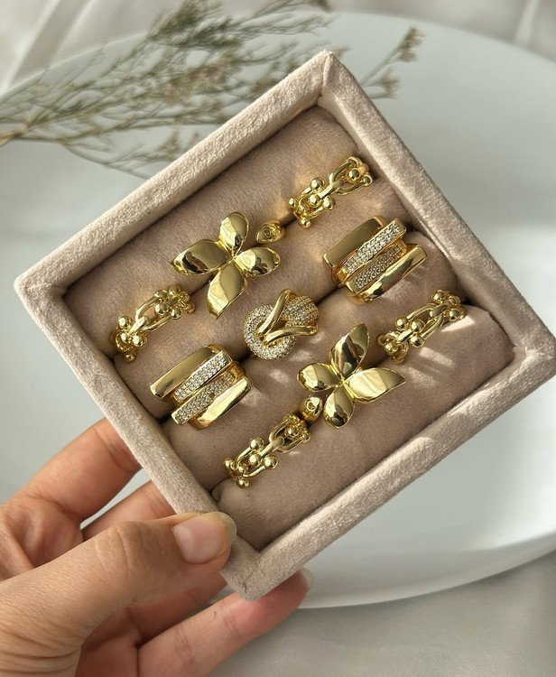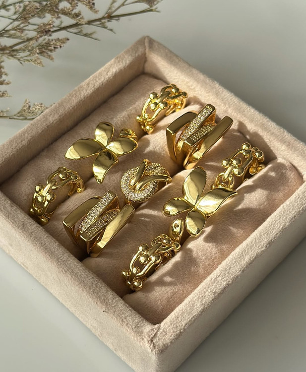 قشنگترین باکس انگشتر جواهری فشن همینجاست. فری سایز و مناسب تمام سایز ها رادیوم با آبکاریِ نقره طرح های جواهری و خیلی شیک.