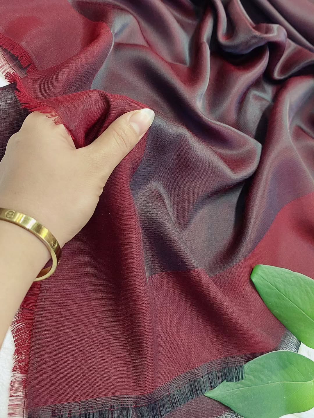 روسری بامبو موجود در گ هر دو طرف قابل استفاده با رنگ متفاوت ایستایی صد در صد اصلا سر نمیخورن پرز و دون نمیشه اصلا نخ کشی ندارن چون بافت پارچه بسیار منسجم و خوبه.