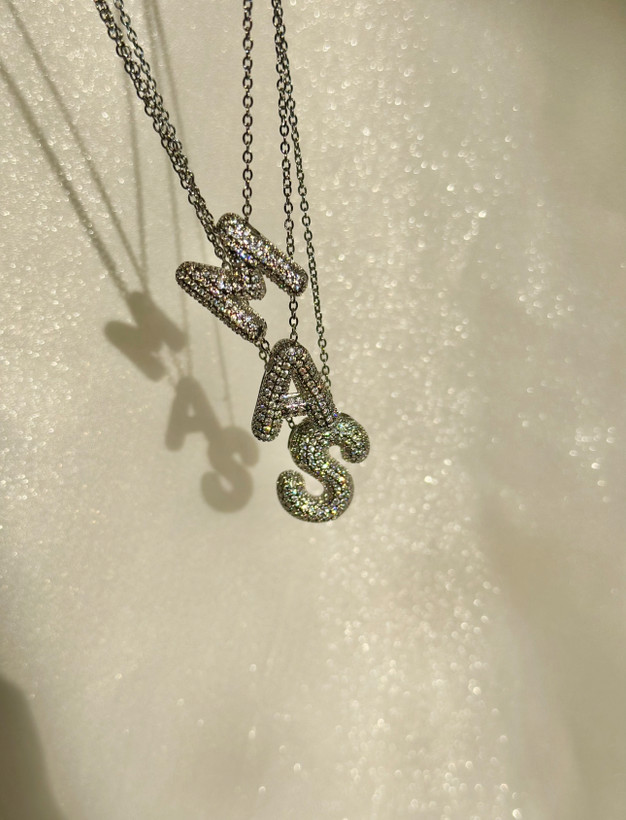 گردنبند حروف بادکنکی نگینی استیل زنانه